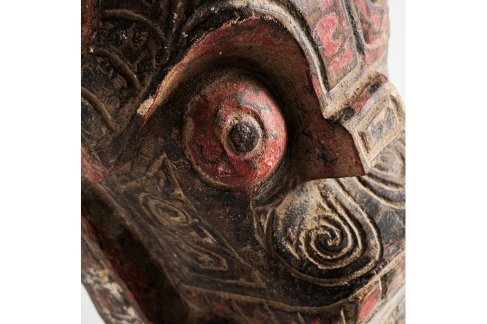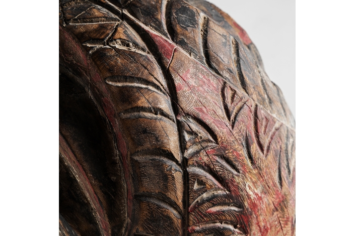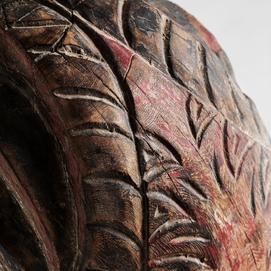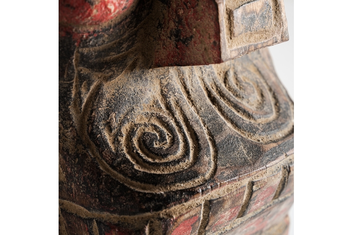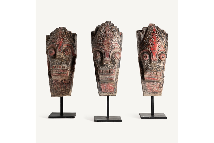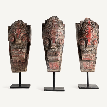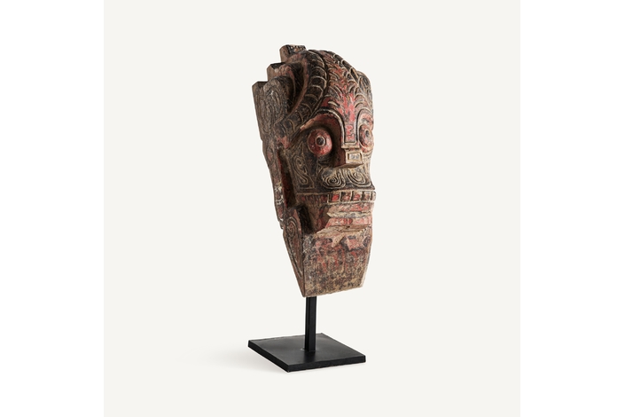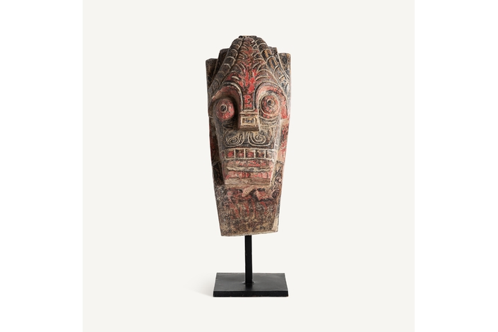 Figura decorativa surtido , de estilo étnico. Fabricado en madera, en color rojo envejecido, combinado con hierro, en color negro.