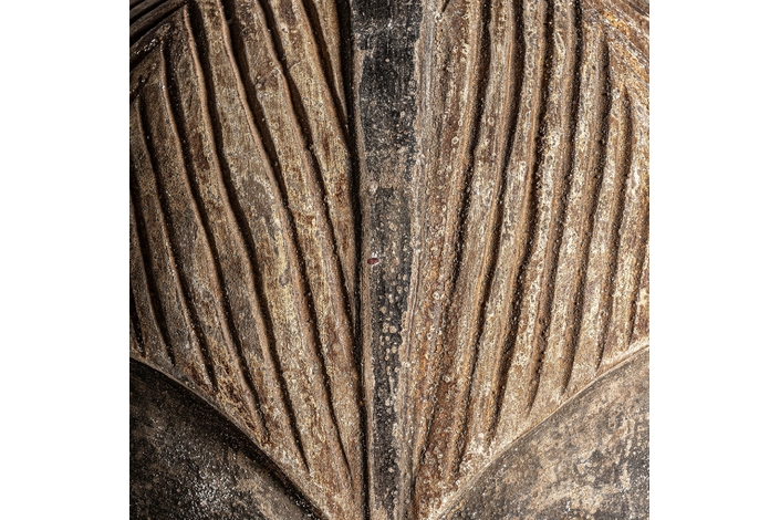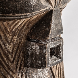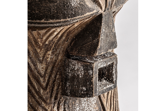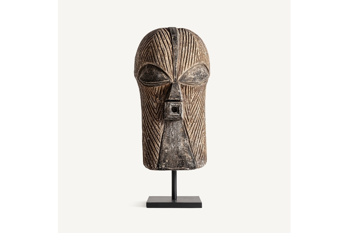 Figura humber, de estilo étnico. Fabricado en madera de mango, en color marrón envejecido, combinado con hierro, en color negro.