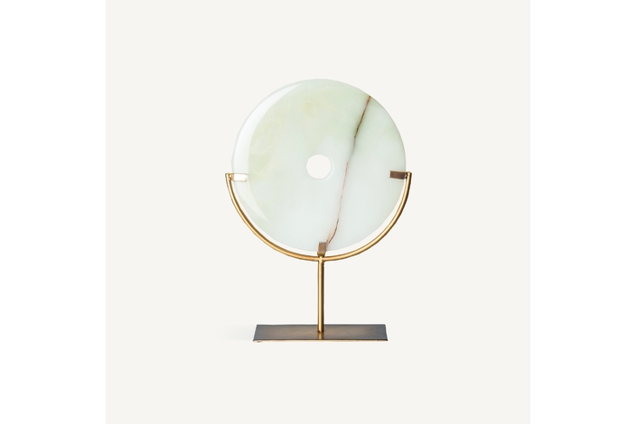 Figura jade, en color oro viejo, de estilo vintage. Fabricado en hierro. Jade natural. Producto desmontable.