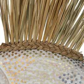Material: madera de albasia, fibra natural, hierro.