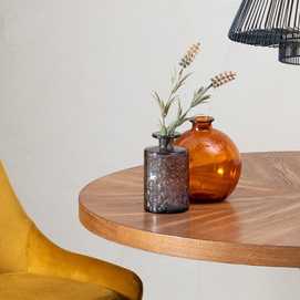 Material: vidrio 100% reciclado. Cualquier imperfección es debida a que el material utilizado es 100% reciclado. Certificado GRS. Pintura totalmente orgánica, apta para alimentación y respetuosas con el medio ambiente. Las ligeras variaciones en colores puede darse debido al proceso de pintado 100% artesanal. Se recomienda lavado manual con detergentes no abrasivos. Capacidad: 0.6 litros. Medida boca: 3cm.
