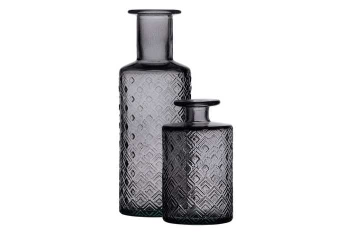 FLORERO GRIS VIDRIO RECICLADO DECORACIÓN 9 X 9 X 16 CM