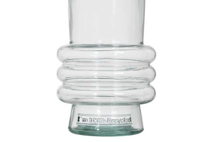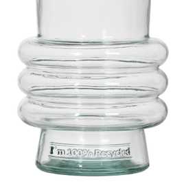 Material: vidrio 100% reciclado. Cualquier imperfección es debida a que el material utilizado es 100% reciclado. Certificado GRS. Pintura totalmente orgánica, apta para alimentación y respetuosas con el medio ambiente. Las ligeras variaciones en colores puede darse debido al proceso de pintado 100% artesanal. Se recomienda lavado manual con detergentes no abrasivos. Capacidad: 0.75 litros. Medida boca: 7,5cm.