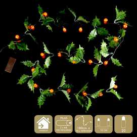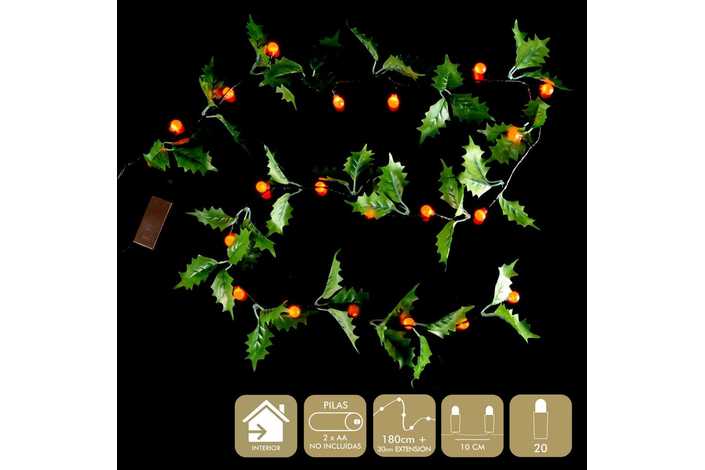 GUIRNALDA ACEBO Y HOJAS 20 LUCES 180 CM