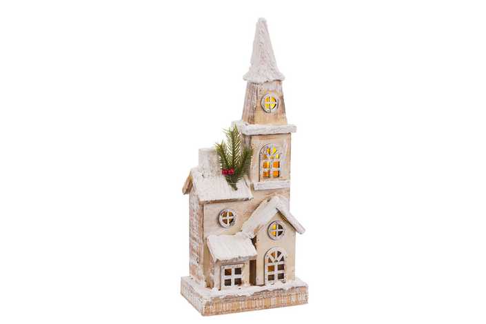 IGLESIA CON LUZ MADERA 18 X 12 X 46 CM