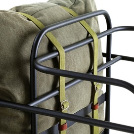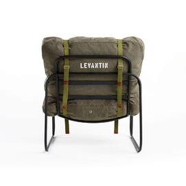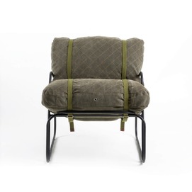 Каркас: стальная труба 16 мм, порошковая покраска, пластиковые накладки. Мягкая часть: съёмный внешний чехол из текстиля х/б брезент Хаки, текстильные стропы. Наполнение: холлофайбер.