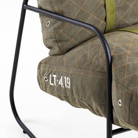 Детьми, мы с братьями очень любили слушать рассказы дедушки о жизни, выпрашивая их при любом удобном случае, примостившись на полу вокруг кресла. И которыми он нас временами баловал, медленно ведя неторопливую нить рассказа, с отвлечениями на подробные детали, расположившись на своем кресле — таком же любителе историй прошлого! Вдохновившись детскими воспоминаниями, мы взялись за перевоплощение архаичного предмета, который стал для нас таким близким и немым свидетелем взросления. В нашей интерпретации герои прошлого оживают, словно хамелеон, окрашиваясь в антураж места действия рассказа. Прорабатывая детали коллекции и материалы отделки, мы создали четыре брутальных архетипа из историй дедушки, ассоциирующихся с запомнившимися нам видами деятельности: Savant (инженер), Lumberer (дровосек), Farmer (крестьянин), Aviator (пилот). Отказавшись от классического образа, мы оставили в основе формы открытый вид, понятное содержание и комфортную посадку, назвав коллекцию выдуманным приятным словом Tuttu.Образ TUTTU Aviator базируется на элементах униформы летчиков и механиков. Нарочито грубая брезентовая ткань, контрастная отстрочка, лямки, пряжки, бутафорный бортовой номер, а также стропы, стягивающие сиденье и спинку, прижимая их к каркасу. Эти детали образуют предмет, ассоциирующийся с героизмом и отвагой первых покорителей небесного океана. Дизайнер: Сергей Львов. Год создания: 2019