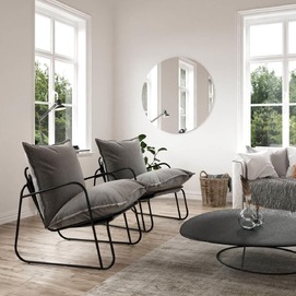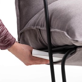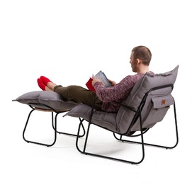 Каркас: стальная труба 16 мм, порошковая покраска, пластиковые накладки. Мягкая часть: съёмный внешний чехол из текстиля Queens, 100% полиэстер, латунный знак подлинности. Наполнение: холлофайбер.