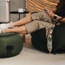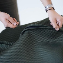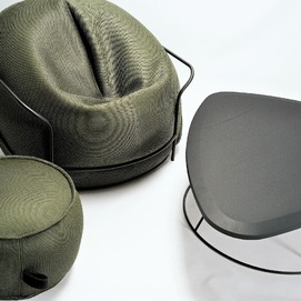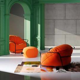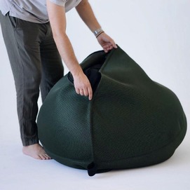 The UNI armchair with a 3D mesh footstool is our joint development with Stas Litvinov Studio. It expresses the spirit of simplicity and immediacy. The raised bean bag chair is made of original fabric, has a friendly look and playful design. The soft shapes of the pillow and pouffe look naturally comfortable. The outer cover is made of technological, artificial 3D mesh. Breathable, quick-drying fabric, odour-free, mildew resistant. The inner pouch is made of stretch nylon, a lightweight and tear-resistant material. The filler consists of a special proportion of two components: elastic holofiber fibers and mini-granules of expanded polystyrene, capable of adapting to the body and the sitting posture. These are environmentally friendly and hypoallergenic materials. A smooth metal frame extends along the contour of the chair, creating an overall silhouette, and also serves as a support when landing. Designers: Stas Litvinov, Sergey Lvov. Year of creation: 2019
