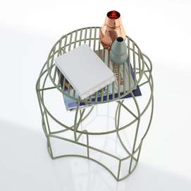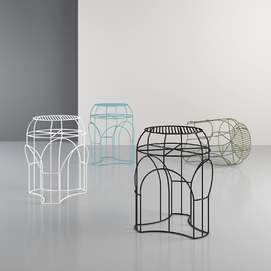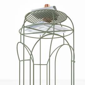La mesa Rotonda es un homenaje a las formas arquitectónicas del pasado. Estructura de varilla fina visualmente ligera, diseñada para decorar espacios públicos, terrazas y balcones. Dentro de la estructura, puedes poner cualquier planta e incluso un pequeño árbol, que revivirá y decorará la habitación creando un invernadero debajo de la superficie de trabajo. Y los estantes abiertos de la mesa estarán decorados con revistas multicolores almacenadas en ellos. Diseñador: Serguéi Lvov. Año de creación: 2014