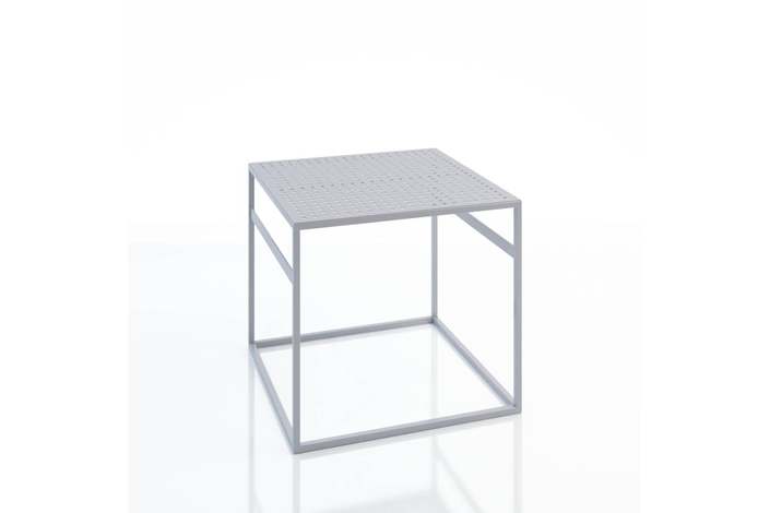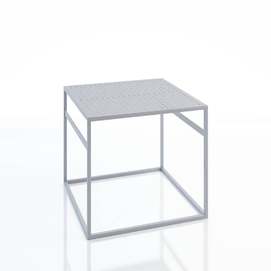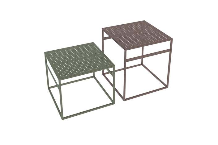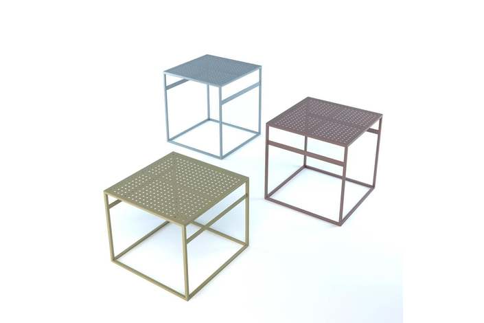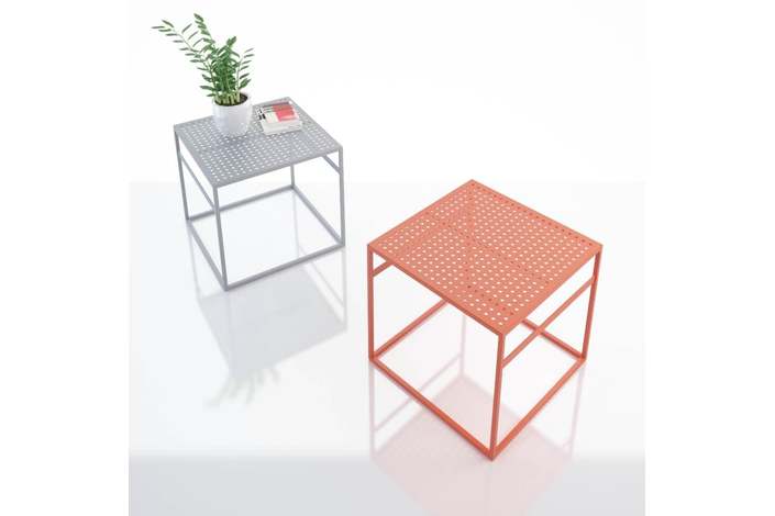 Office es una mesa de metal versátil para uso en interiores y exteriores. Si haces un juego de mesas, se verá como una divertida isla de bromas, similar a cubos multicolores dejados en el suelo por un niño travieso. Crean una atmósfera maravillosa para la comunicación informal. Debajo de la mesa hay dos travesaños que actúan como puntos de lectura para los libros y revistas que se leen a la hora del almuerzo. Para una apariencia más aireada, la superficie de la mesa tiene filas de agujeros perforados. Diseñador: Serguéi Lvov. Año de fundación: 2016