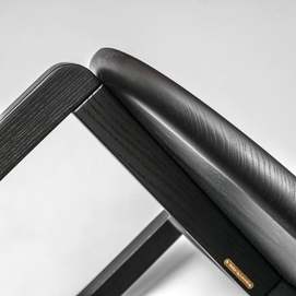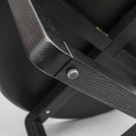 Base: fresno macizo (roble disponible bajo pedido), protectores de suelo, distintivo de autenticidad en latón. Revestimiento: aceite de cera dura OSMO (Alemania); Esmalte de poliuretano negro para madera KEMICHAL (Italia). Superficie: mate sedoso.
