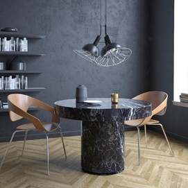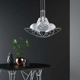 Серия Baffi состоит из одинарных подвесов, и срощенных тройных люстр, вдохновленных созиданием органической жизни. Лампа представляет собой лаконичную колбу из металла и стеклянного плафона, оканчивающуюся изящными переплетениями прутьев, закрученными в спираль. Это символ жизненной силы, а также схематический образ эволюции каждого живого организма и вселенной вообще.Когда лампа включена, свет приобретает форму, порождая очаровательную игру отражений и теней, проецируемую на окружающие предметы. По окутанным потоками света линиям, соскальзывают отраженные лучи, вдыхающие жизнь в неодушевленный предмет. Всмотревшись вы легко угадаете в ожившем образе Baffi распускающиеся усики цветущего бутона, — маленькое природное чудо. Легкие и нежные, они добавляют нотки волшебства и олицетворение жизни в каждый экологичный интерьер. Дизайнер Сергей Львов. Год создания 2019