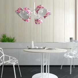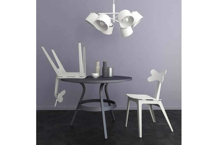 The elegant series of Lefor luminaires is an ode to pure forms: a combination of a laconic light diffuser element and thin, technological lines of the base. In a monochromatic version, it embodies refined and balanced proportions, suggesting the formal austerity of minimalism. In the modification with painterly textiles, the image of Lefor, imbued with romantic charm, is subordinated to the feeling of oneness with the user, turning the living room or bedroom into a meeting place and love. Lefor consists of a rotating metal base with lampshades. This flexible and balanced configuration allows the user to easily adjust the direction of the light. It also optimizes transport: by separating the lampshades, the base rotates in one plane with a simple movement, minimizing the size of the package, as well as solving assembly and installation problems. The series includes chandeliers with 4 and 6 lampshades, as well as wall sconces with 1 and 2 lampshades, which are ideal for both private interiors and modern spaces from the hospitality industry. Designer Sergey Lvov. Year of establishment 2019