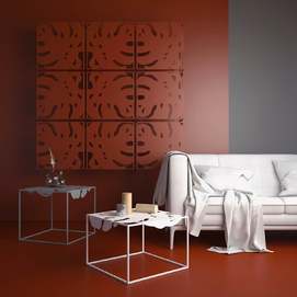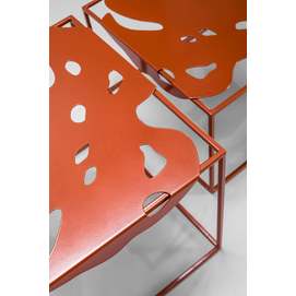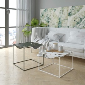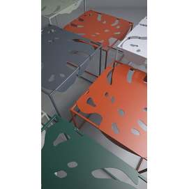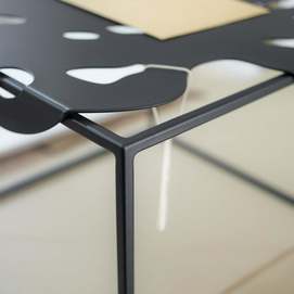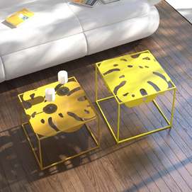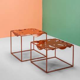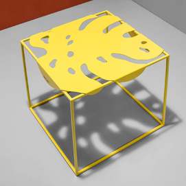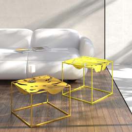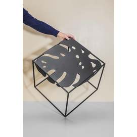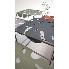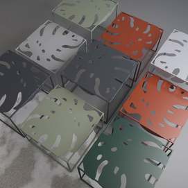 La colección Igapo está inspirada en la vegetación de la selva tropical, reinterpretada. Una característica especial de la colección es la imagen de una hoja inmarcesible de la planta tropical Monstera deliciosa, inusualmente adaptada a la vida cotidiana. El tablero de metal está empotrado en el marco y se fija gracias a los pliegues que lo rodean. Colocamos cuidadosamente protectores de silicona debajo de la mesa para un uso cómodo, sin sonidos metálicos. Y su parquet está protegido por almohadillas de silicona para el suelo. Gracias a la apariencia aireada y la forma exótica de las superficies, el objeto discreto de la sala de estar ha recibido un nuevo y atractivo desempeño. Diseñador: Serguéi Lvov. Año de creación: 2019