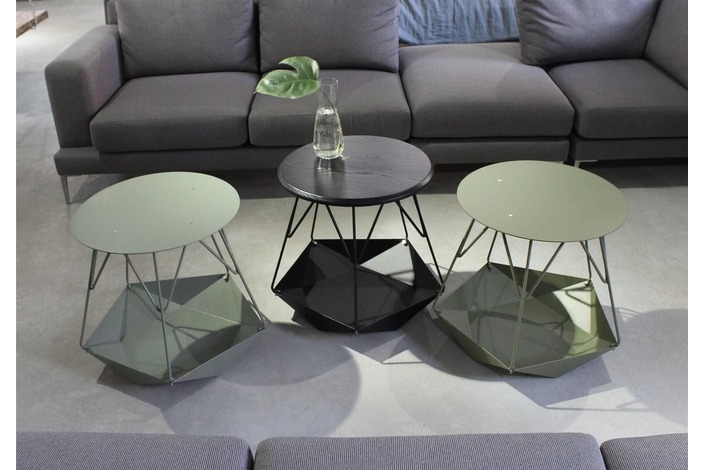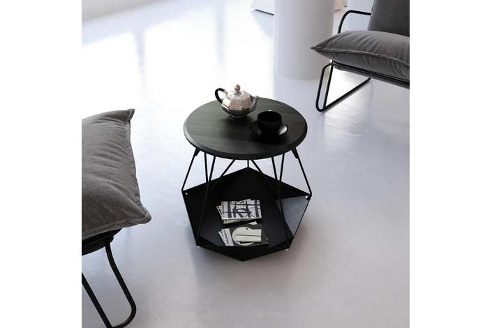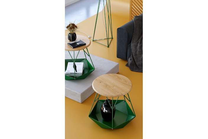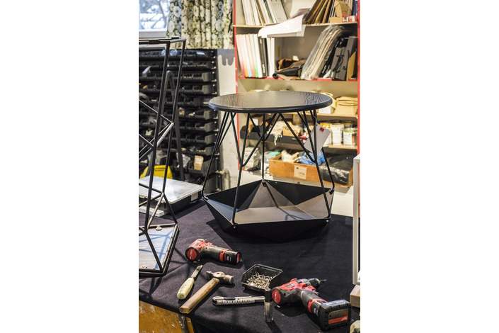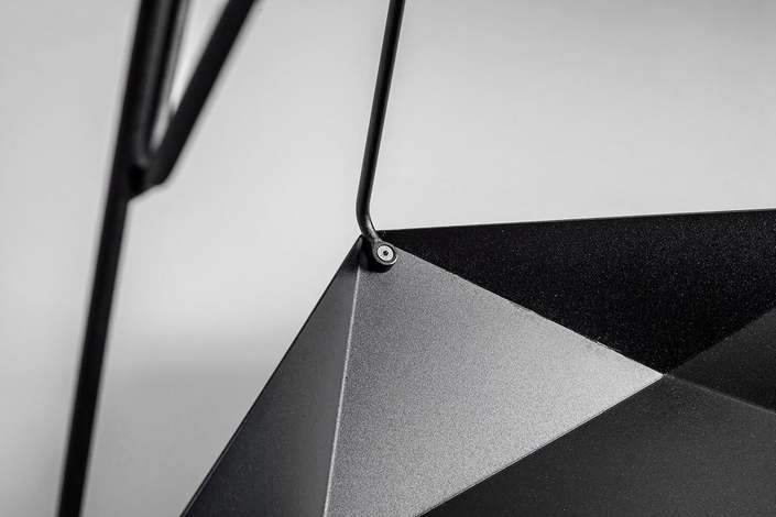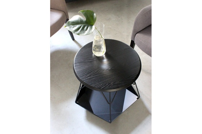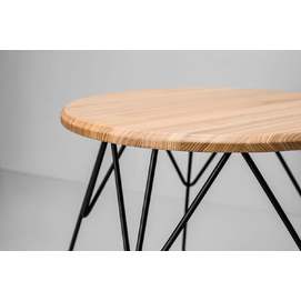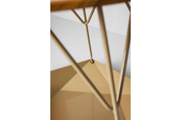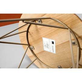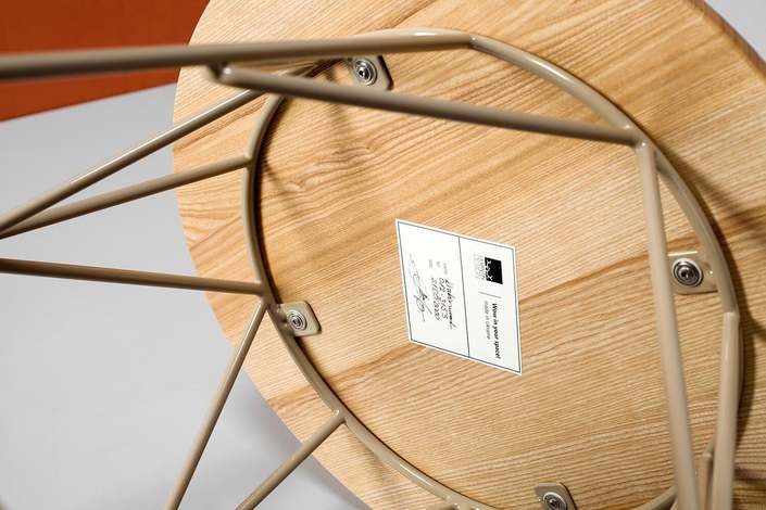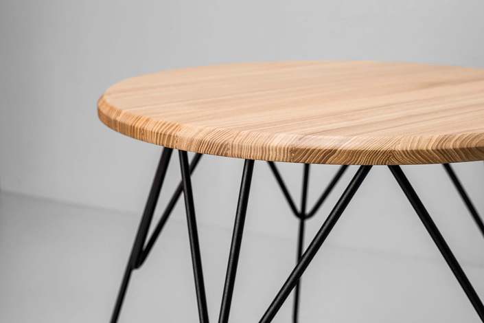 Каркас: стальной стержень 10 мм, порошковая покраска, войлочные накладки для защиты пола, латунный знак подлинности. Столешница: массив ясеня 20 мм (по запросу возможно изготовление из дуба). Покрытие: масло с твёрдым воском OSMO (Германия); полиуретановая черная эмаль для дерева KEMICHAL (Италия). Поверхность: шелковисто-матовая.
