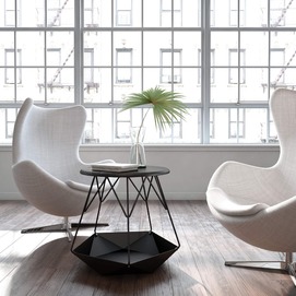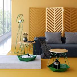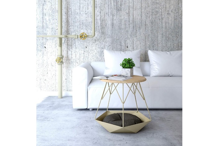 Вдохновением для стола Krater (от греч. "древнегреческая чаша"), явился непокорный нрав нашего кота, предпочитающего спать в укромных местах. Его визитной карточкой стала напольная чаша, будто из бумаги скрученная в незатейливую фигурку оригами. Получившееся свободное пространство под столешницей станет уютным местом отдыха для домашнего любимца, а также идеально подойдет для хранения полезных мелочей. Стол был выбран для украинского коллективного стенда Diffusion в рамках парижской недели дизайна Paris Design Week 2018. Дизайнер: Сергей Львов. Год создания: 2015