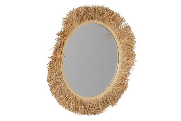 Material: rafia. Medida interior espejo: 48,5cm. Incluye colgador para su correcta colocación.