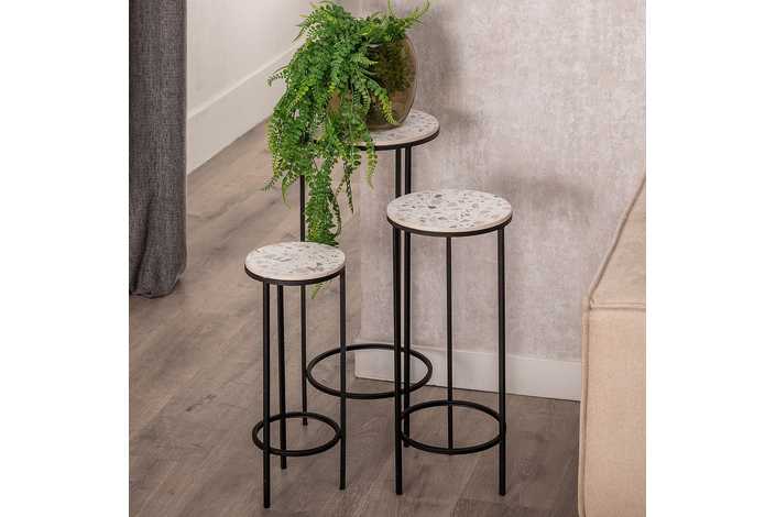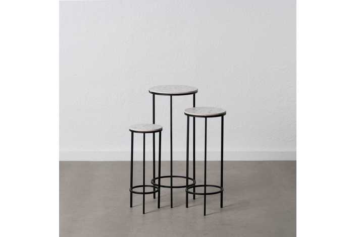 S/3 MESITAS NEGRO-GRIS METAL 30 X 30 X 71 CM