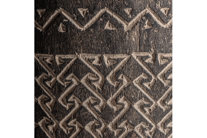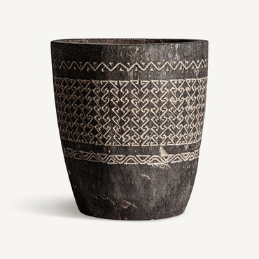 Jarrón, en color tonos en marrón. Fabricado en madera palma.