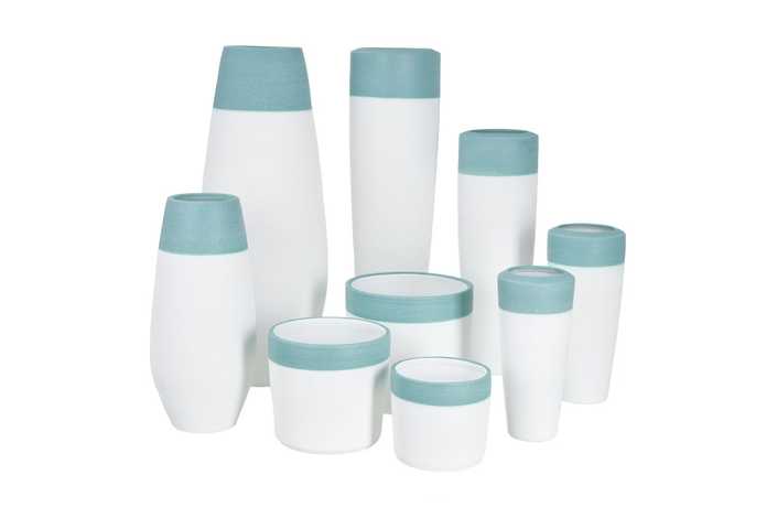 JARRÓN BLANCO-AZUL CERÁMICA DECORACIÓN 17 X 17 X 40 CM