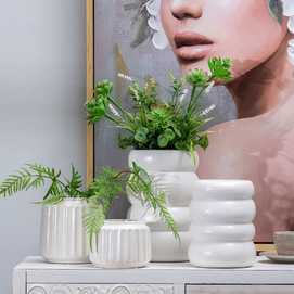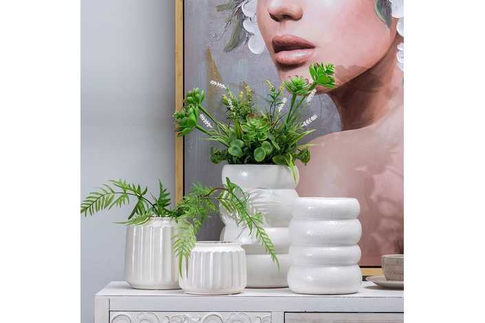 JARRÓN BLANCO CERÁMICA DECORACIÓN 16 X 16 X 16 CM
