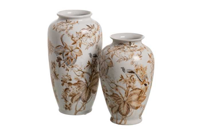 JARRÓN BLANCO-MARRÓN PORCELANA 19 X 19 X 33 CM