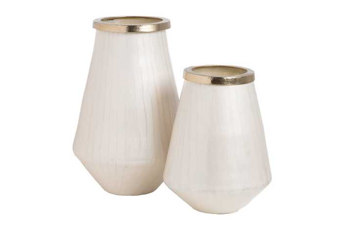 JARRÓN BLANCO METAL-CRISTAL DECORACIÓN 23 X 23 X 29 CM