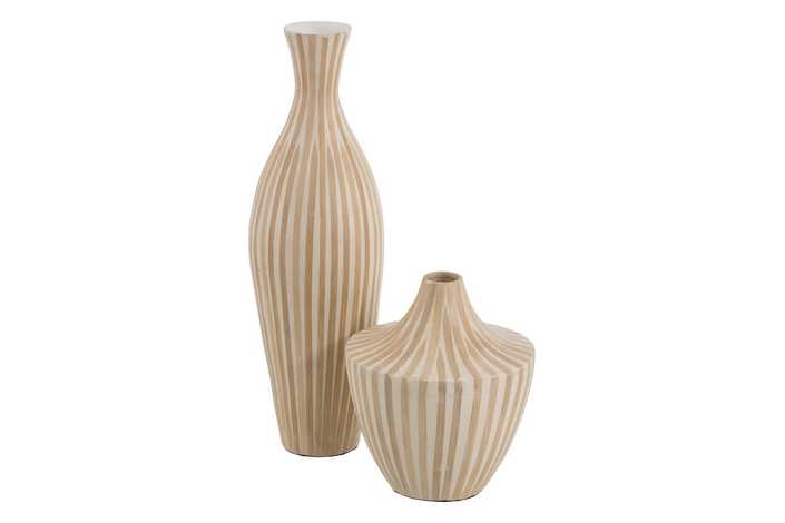 JARRÓN BLANCO-NATURAL BAMBÚ DECORACIÓN 20 X 20 X 64 CM