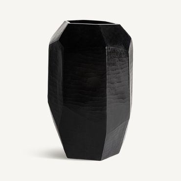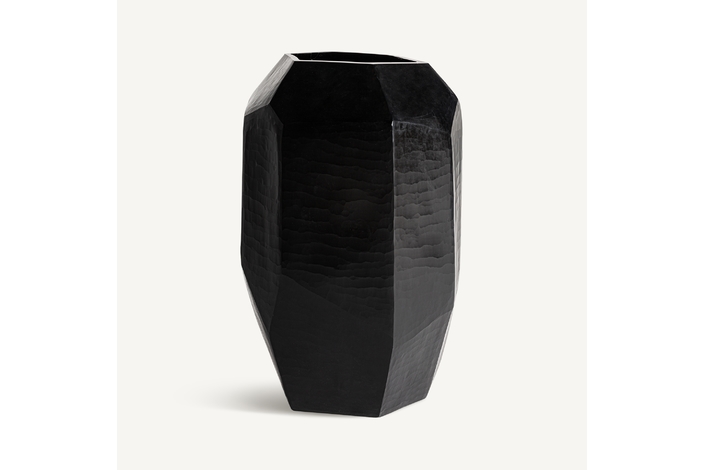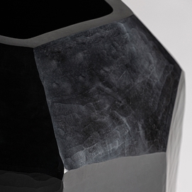Jarrón galeo, en color negro, de estilo contemporáneo. Fabricado en cerámica.