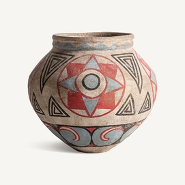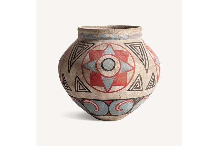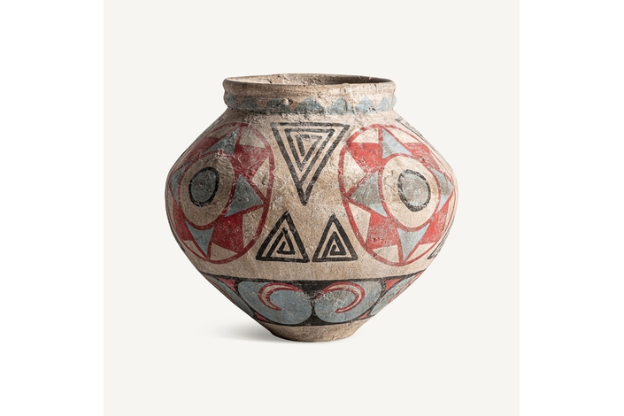 Jarrón heneo, en color multicolor, de estilo étnico. Fabricado en terracota.