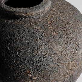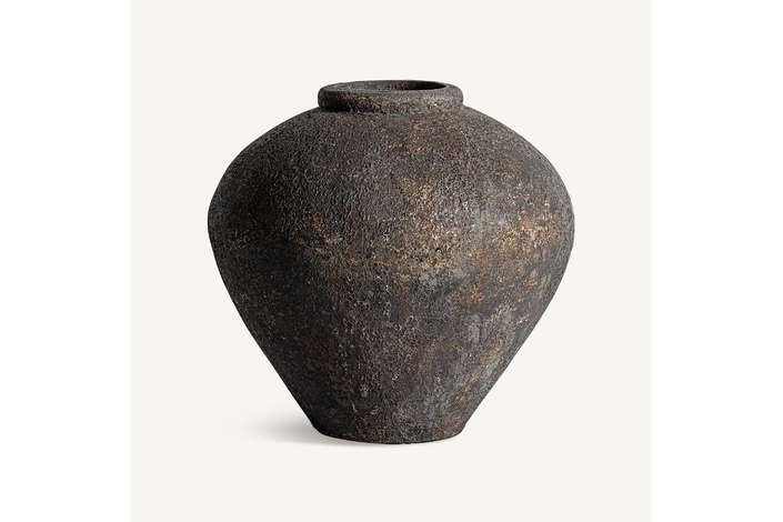 Jarrón igor, en color tonos oscuros, de estilo contemporáneo. Fabricado en terracota.