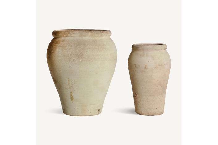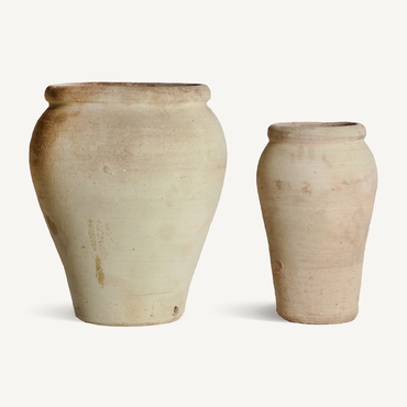 Jarrón j/2 felhease, en color crema envejecido, de estilo colonial. Fabricado en arcilla.