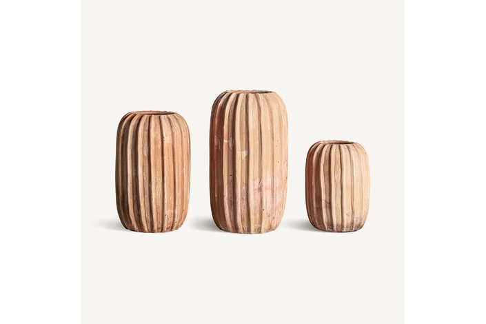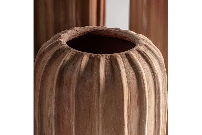 Jarrón j/3 aike, en color marrón claro envejecido, de estilo contemporáneo. Fabricado en arcilla.
