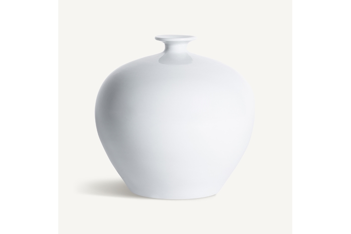 Jarrón jelen, en color blanco, de estilo art deco. Fabricado en cerámica.