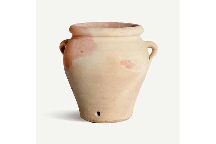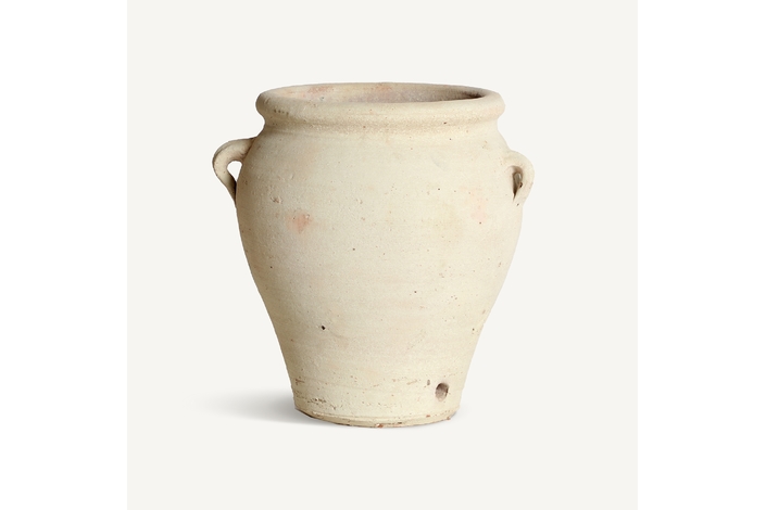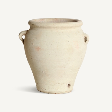 Jarrón kaless, en color crema, de estilo colonial. Fabricado en arcilla.