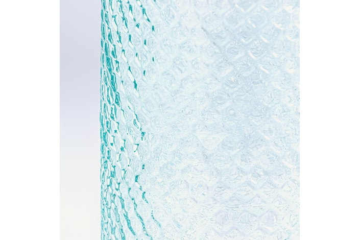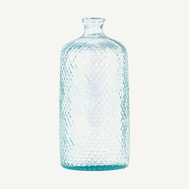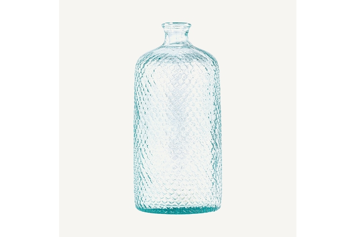 Jarrón kura, en color transparente, de estilo vintage. Fabricado en vidrio.