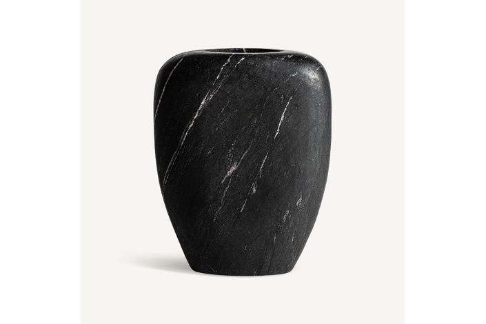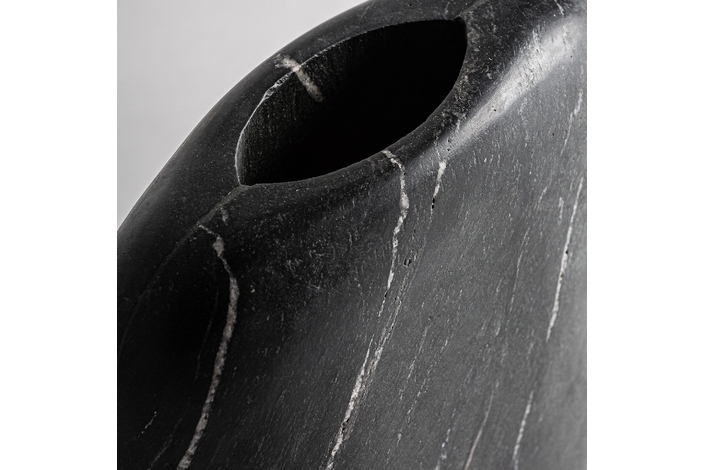 Jarrón levi, en color negro, de estilo contemporáneo. Fabricado en mármol.