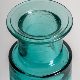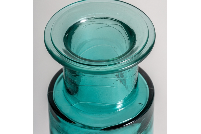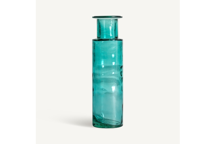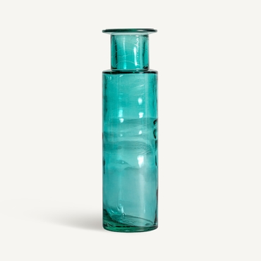 Jarrón mar, en color turquesa brillo, de estilo contemporáneo. Fabricado en cristal.