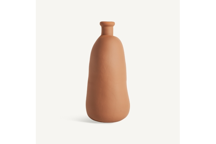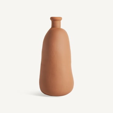 Jarrón Messe de estilo contemporáneo, fabricado en vidrio en color chocolate.