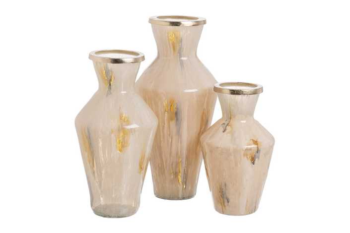 JARRÓN METAL-CRISTAL DECORACIÓN 28 X 28 X 57 CM