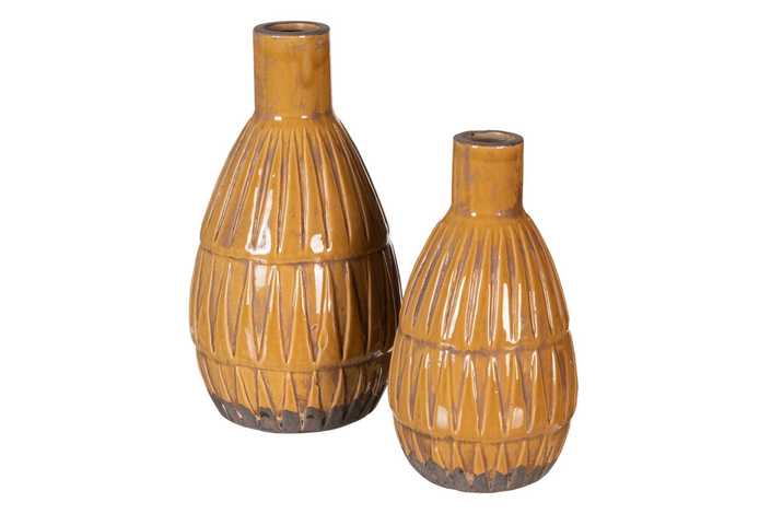 JARRÓN MOSTAZA CERÁMICA DECORACIÓN 14 X 14 X 25,50 CM
