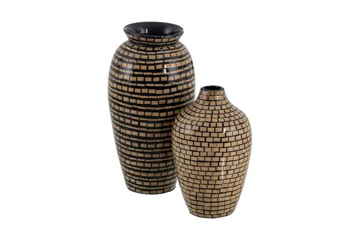 JARRÓN NATURAL-NEGRO BAMBÚ DECORACIÓN 21 X 21 X 40 CM