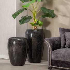 Material: fibra de vidrio, cristal templado. Falso jarrón, dispone de orificio solo en la parte superior.