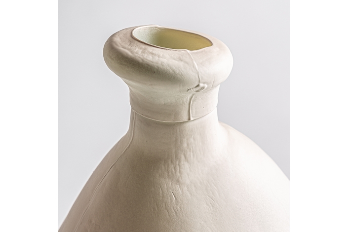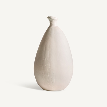 El jarrón Ostuni, en vidrio blanco roto con acabado mate, refleja la pureza de los paisajes mediterráneos. Su forma alargada y texturizada añade serenidad y elegancia atemporal, ideal para espacios luminosos y relajados.