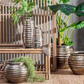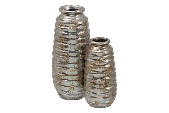 JARRÓN PLATA ENVEJECIDA CERÁMICA 15 X 15 X 30 CM