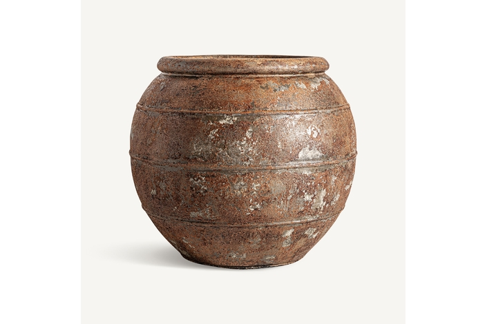 Jarrón roger, en color marrón envejecido, de estilo vintage. Fabricado en cerámica.