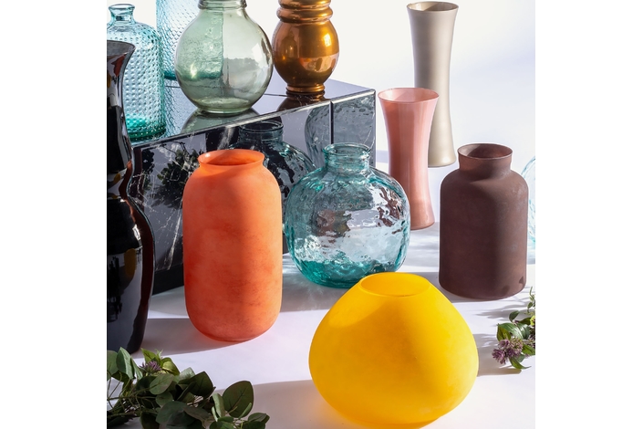 Jarrón rui, en color transparente, de estilo vintage. Fabricado en vidrio.