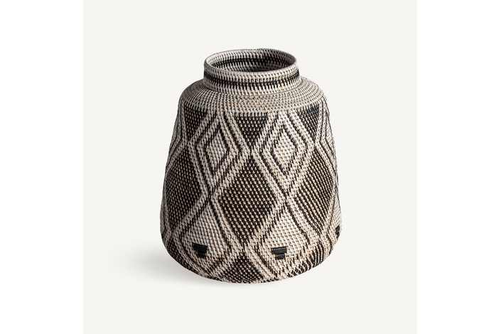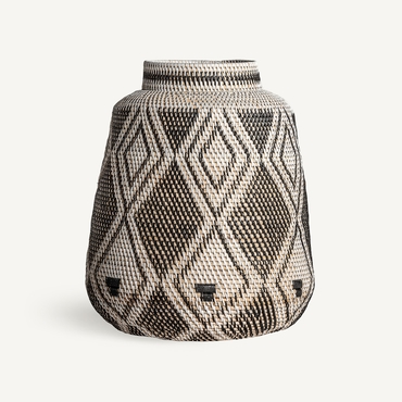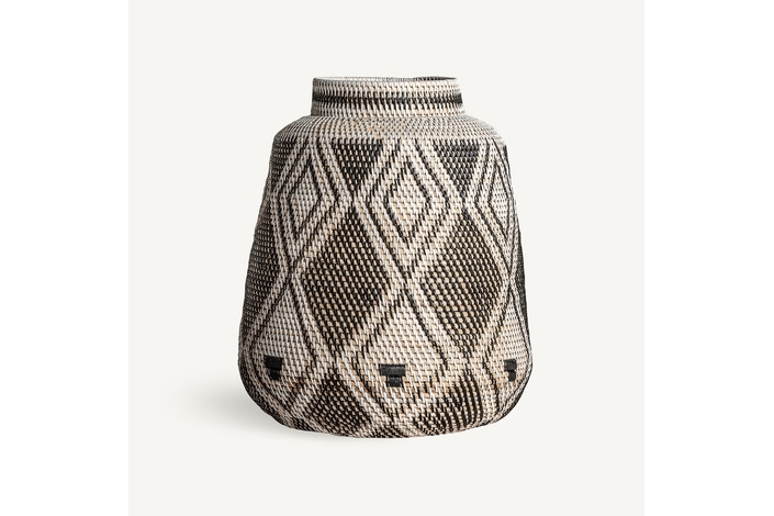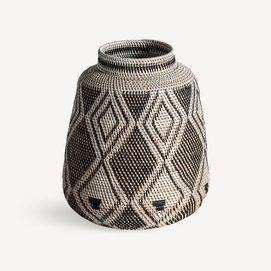Jarrón zirba, en color marrón, de estilo étnico. Fabricado en ratán.