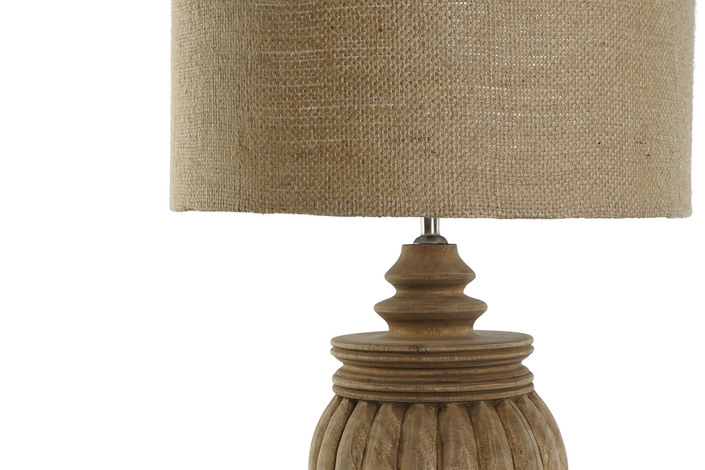 LAMPARA SOBREMESA MADERA YUTE 41X41X76 TALLADO